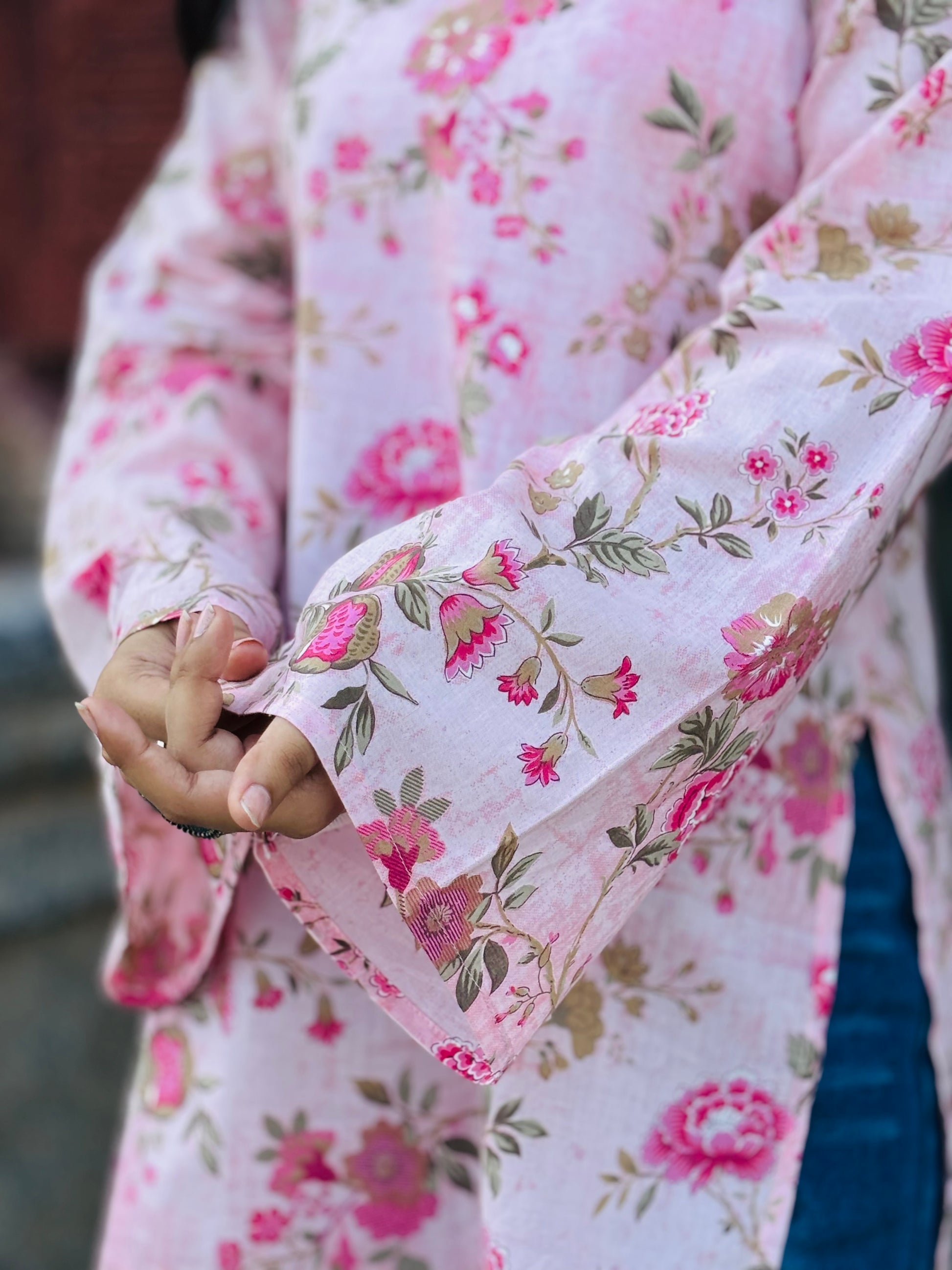 Bring timeless elegance to your wardrobe with our Pink Floral Handcrafted Kurti.