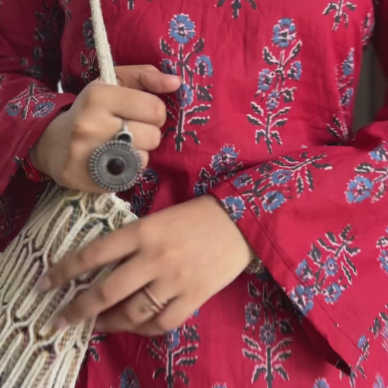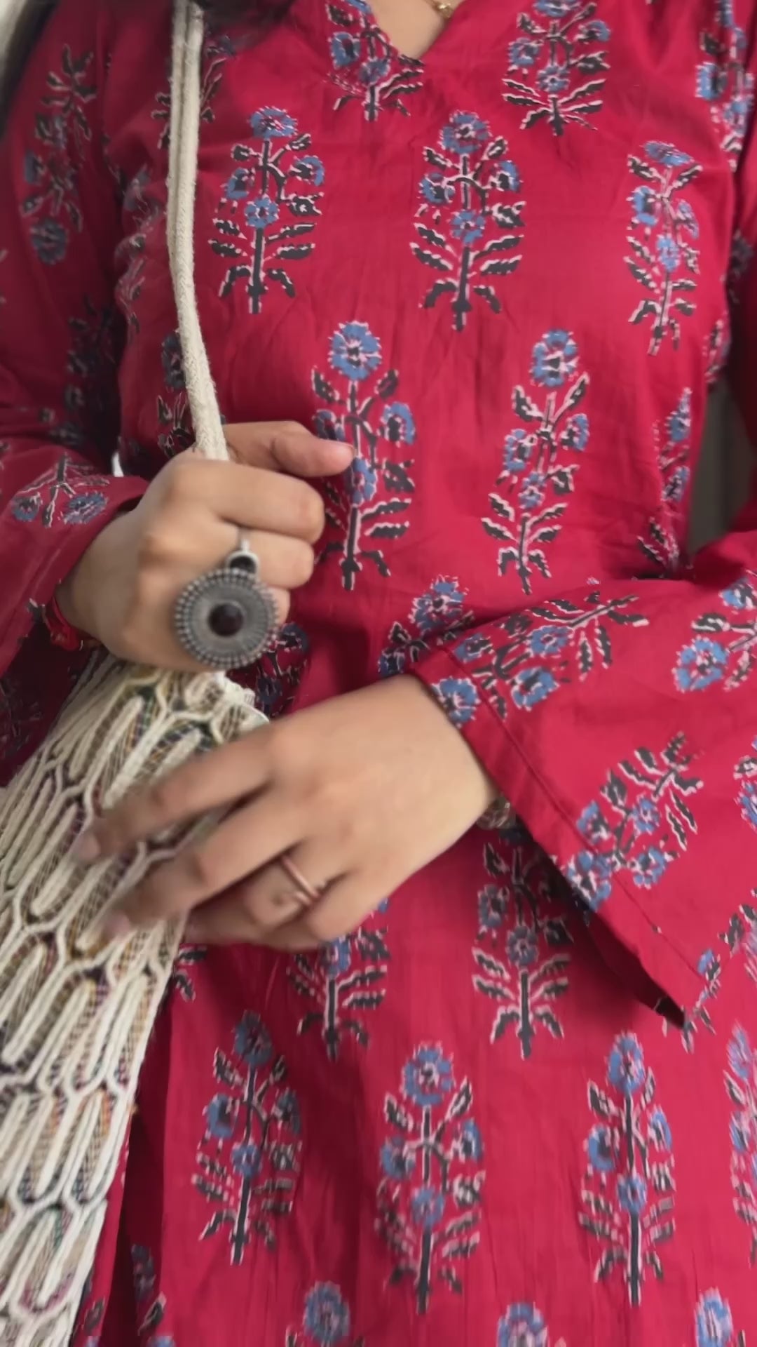 Elevate your everyday ethnic look with this elegant red handblock printed cotton co-ord set. Designed for both comfort and style, it features a straight-fit kurta with a round neckline and matching pants, showcasing intricate traditional motifs in subtle prints. Crafted from breathable cotton fabric, this set is perfect for casual outings, office wear, or festive gatherings. Pair it with minimal jewelry and a chic handbag to complete the look.